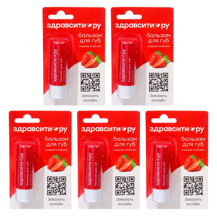Бальзам для губ Здравсити "Сладкая клубника", 5 шт по 4,2 г