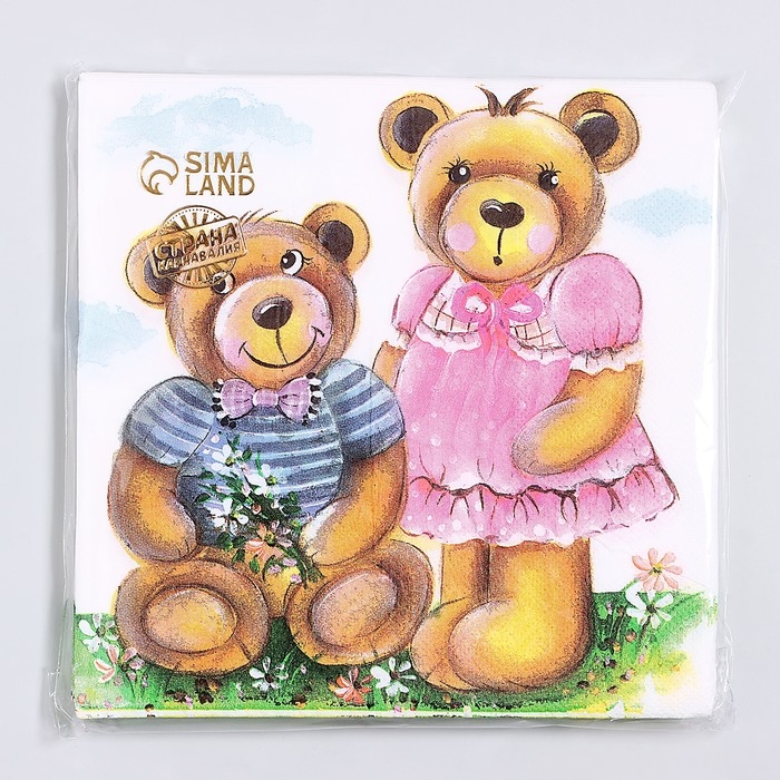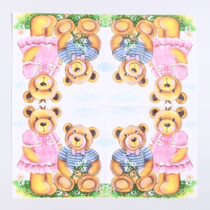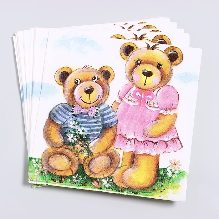 Салфетки бумажные «Медвежата», 33х33 см, набор 20 шт