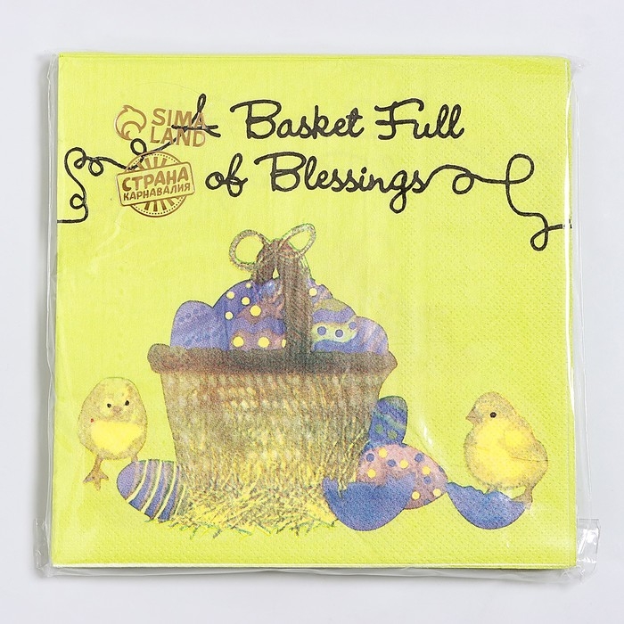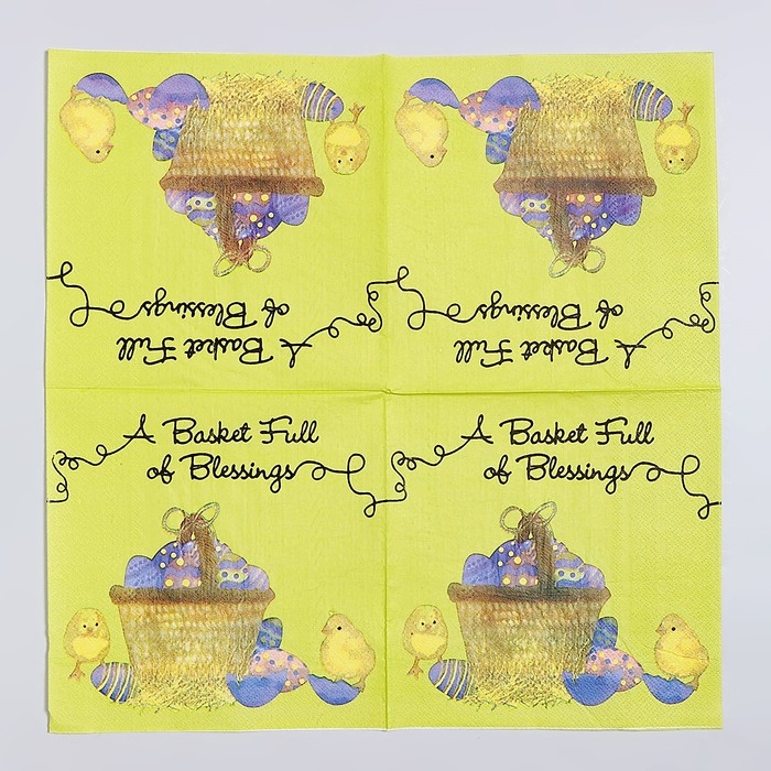 Салфетки бумажные «Пасхальная корзина» с цыплятами, 33х33 см, набор 20 шт