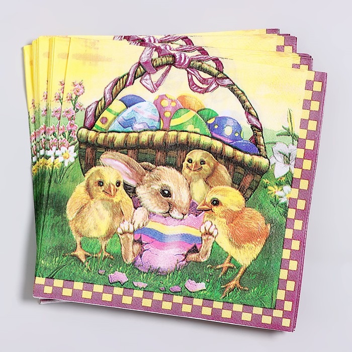 Салфетки бумажные «Пасхальная корзина» 33х33 см, набор 20 шт