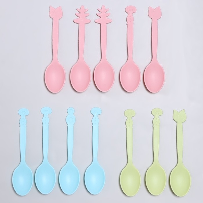 Ложки пластиковые, 9 см, 12 шт., цвет МИКС