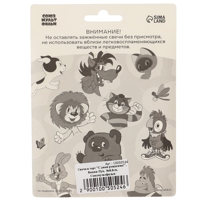 Свеча для торта "С Днем Рождения!", 8 х 8,8 см, Союзмультфильм