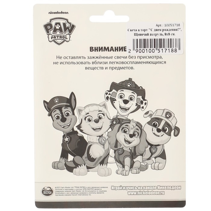 Свеча для торта "С Днем Рождения!", 8 х 8 см, Щенячий патруль