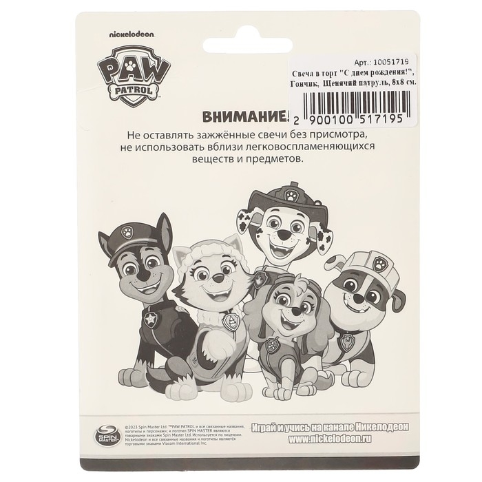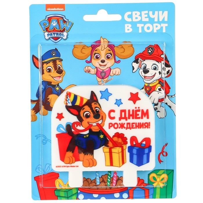 Свеча для торта "С Днем Рождения!", 8 х 8,8 см, Щенячий патруль