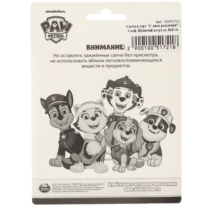 Свеча для торта "С Днем Рождения!", 8 х 8 см, Щенячий патруль