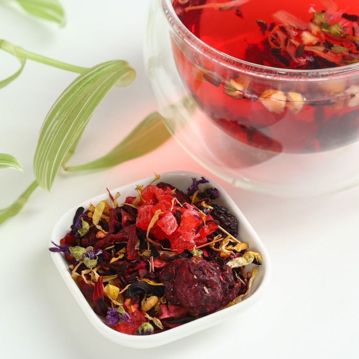 Состав: каркаде, мальва, календула, шиповник, яблоко, вишня, изюм, папайя, натуральные ароматические масла.