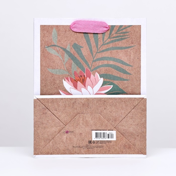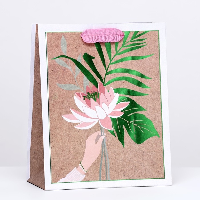 Пакет крафт "Белый лотос" 18 х 22,3 х 10 см