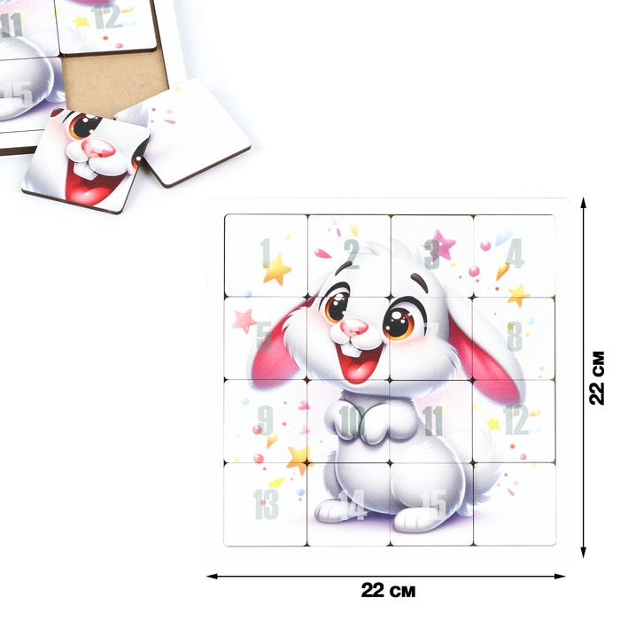 Головоломка "Пятнашки. Зайка", логическая настольная игра, 22х22 см