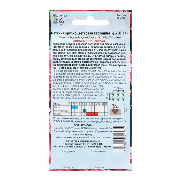 Семена Цветов Петуния крупноцвет "Дуэт", 0 шт