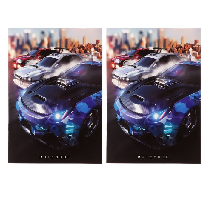 Набор блокнотов А5, 32 листа в клетку на скрепке "Гонки", обложка мелованный картон, блок офсет, 2 штуки