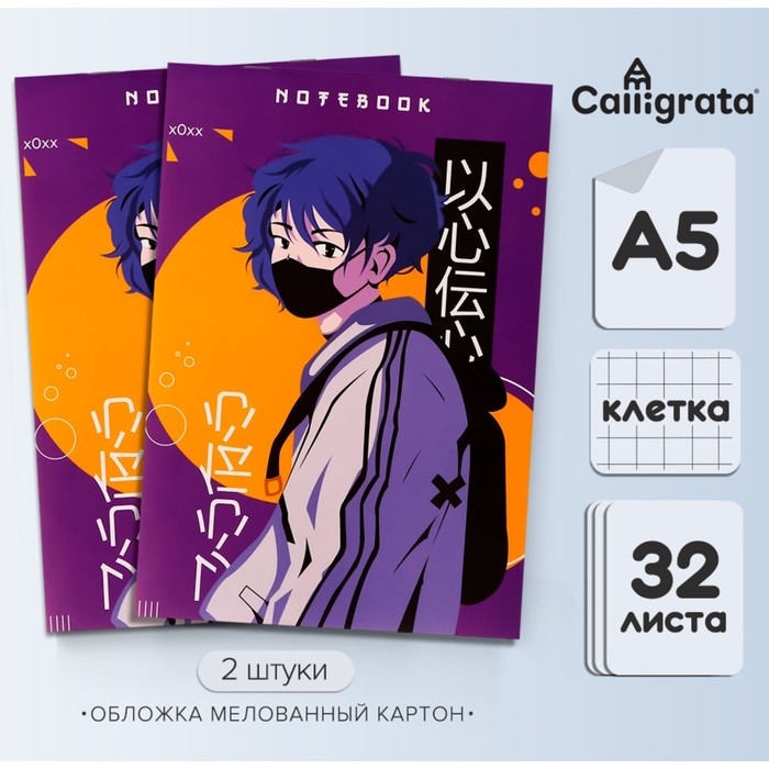 Набор из двух блокнотов А5, 32 листа в клетку на скобе. Обложка из мелованного картона, блок из офсетной бумаги плотностью 60 г/м2. Собственное производство в России! Блокнот для записей в клетку может использоваться как тетрадь, записная книжка или личный дневник