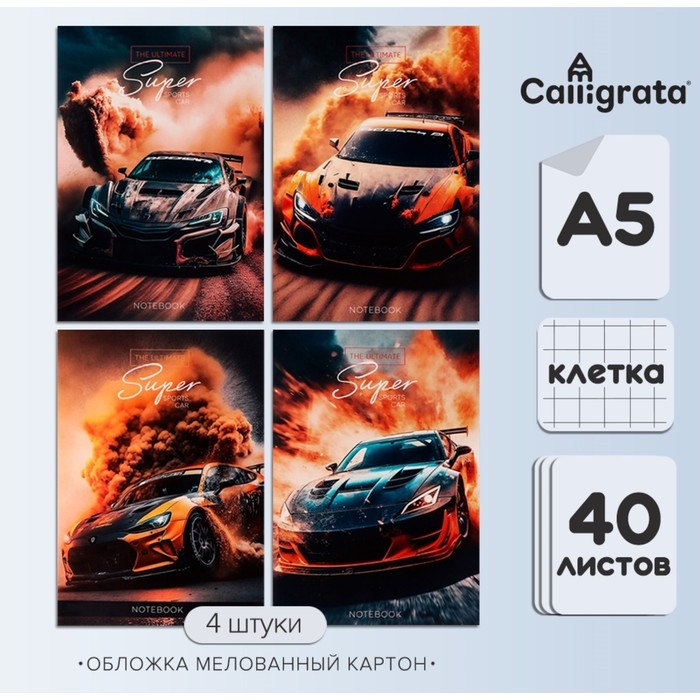 Набор блокнотов А5, 40 листов в клетку на скрепке "Авто", обложка мелованный картон, блок офсет, 4 штуки