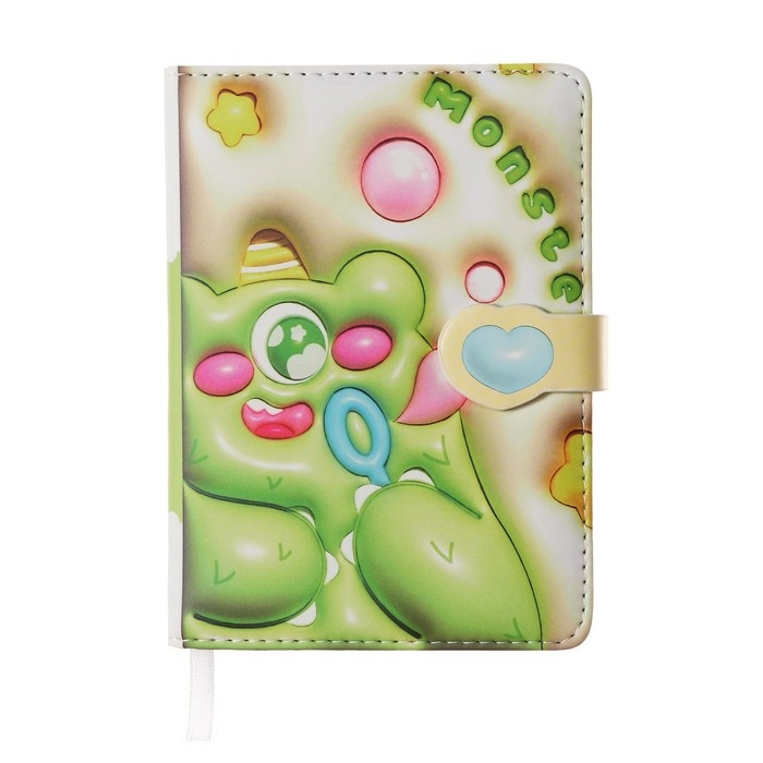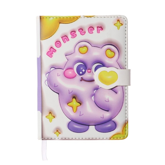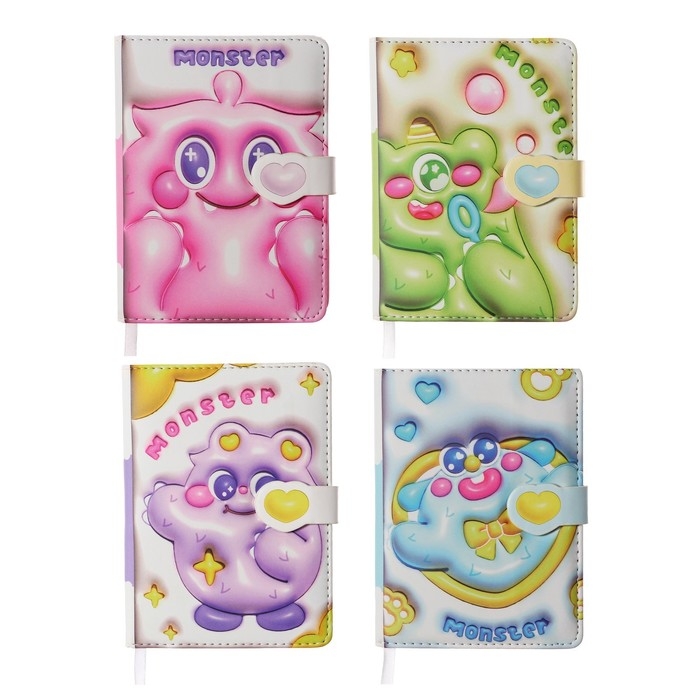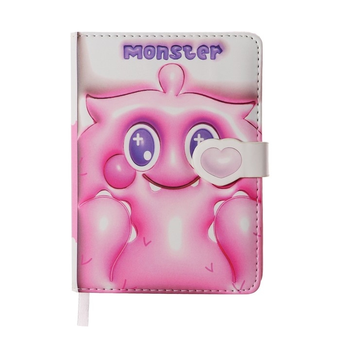 Записная книжка подарочная, А6, 100 листов, цветной блок, с фигурным хлястиком, обложка пвх, "Монстр", МИКС