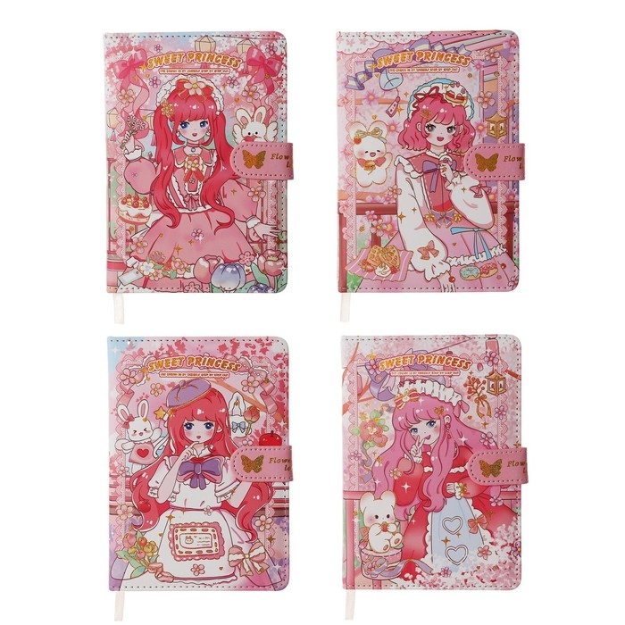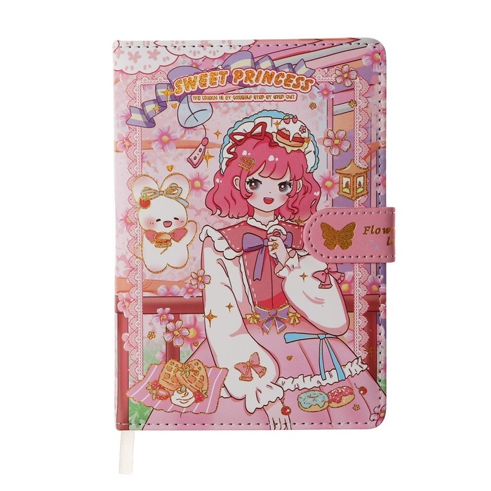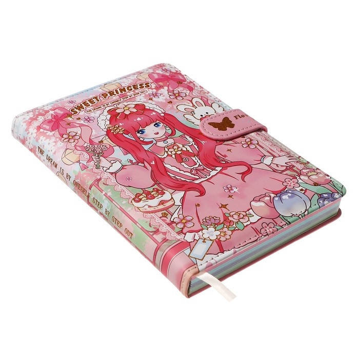 Записная книжка подарочная, А6+,132 листа, цветной блок, с фигурным хлястиком, обложка пвх, "Аниме", МИКС