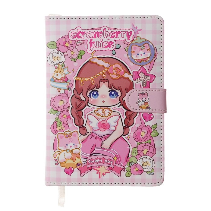 Записная книжка подарочная, А6+,132 листа, цветной блок, с фигурным хлястиком, обложка пвх, "Аниме", МИКС