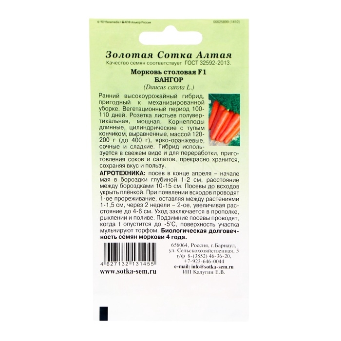 Семена Морковь "Бангор F1", раннеспелая, 0,2 г
