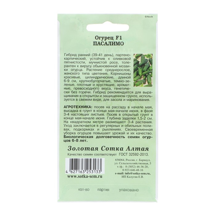 Семена Огурец "Пасалимо F1" партенокарпический, 5 шт