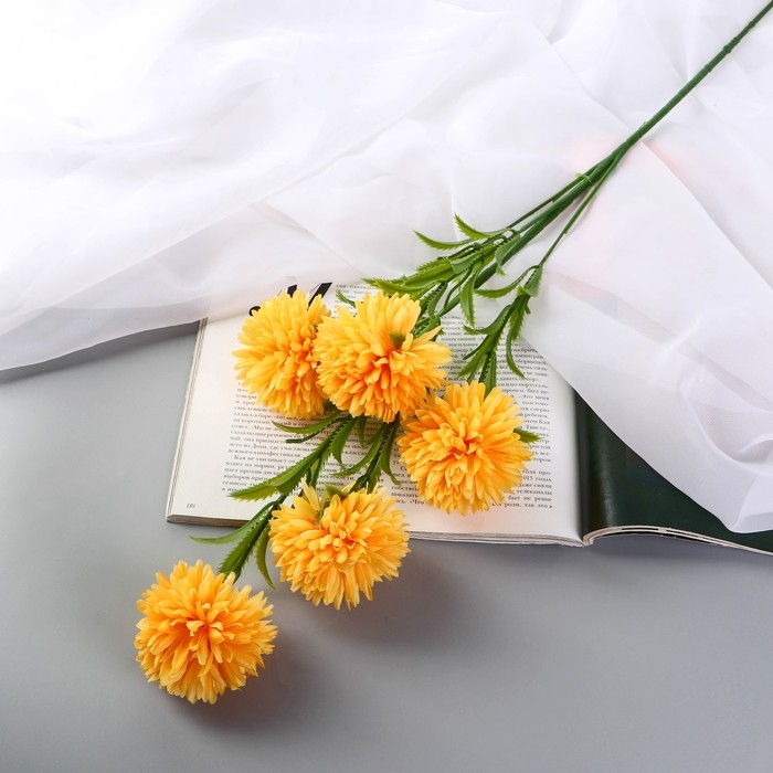 Цветы искусственные "Хризантема помпон" d-6 см 80 см, жёлтый