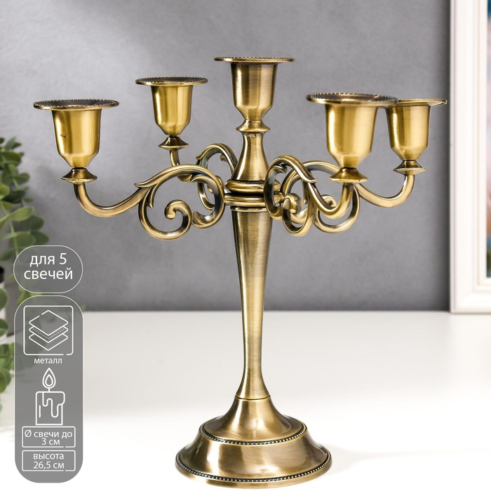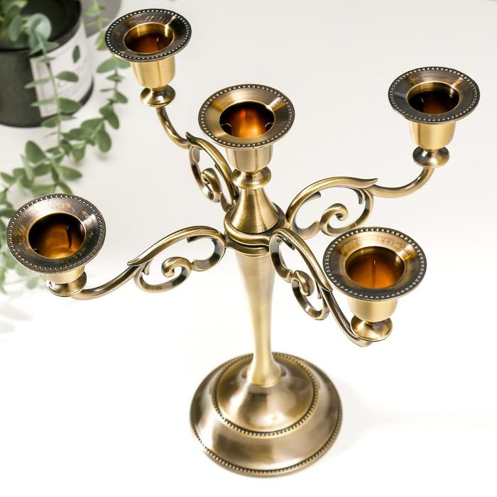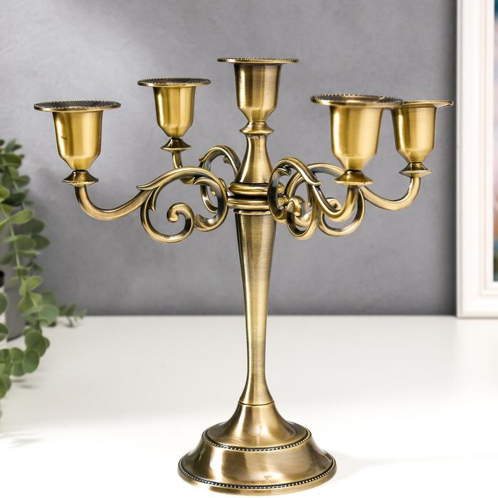 Подсвечник металл на 5 свечей "Лаконичность" цвет латуни 26,5х27,5х10 см