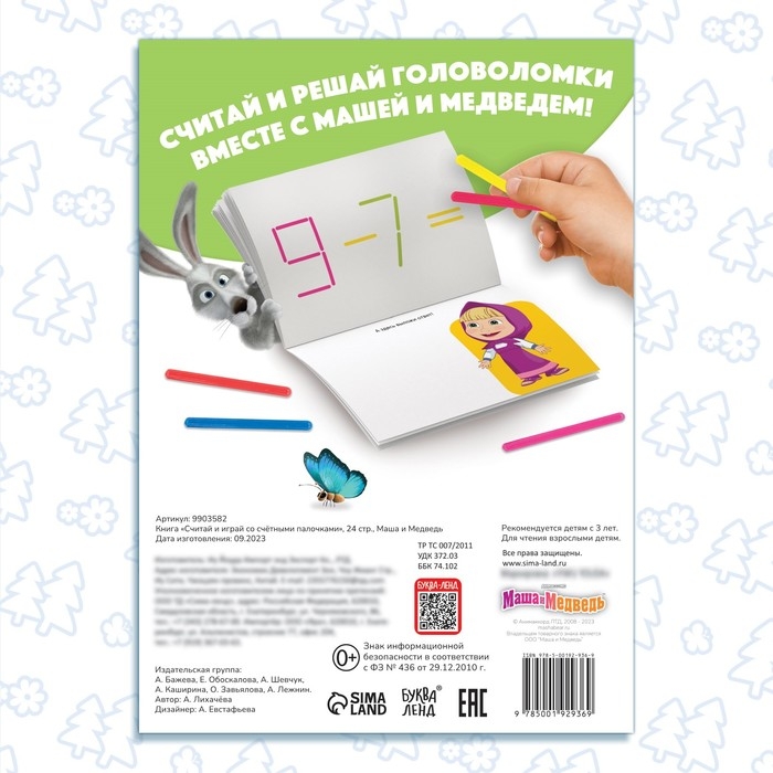Набор «Считай и играй»: книга 24 стр., 17 × 24 см, + 100 палочек, Маша и Медведь