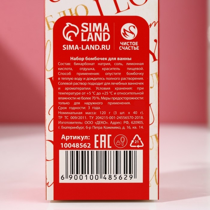 Подарочный набор косметики I love you, бомбочки для ванны 3 х 40 г, ЧИСТОЕ СЧАСТЬЕ
