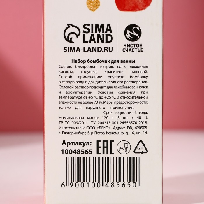 Подарочный набор косметики I love you, бомбочки для ванны 3 х 40 г, ЧИСТОЕ СЧАСТЬЕ