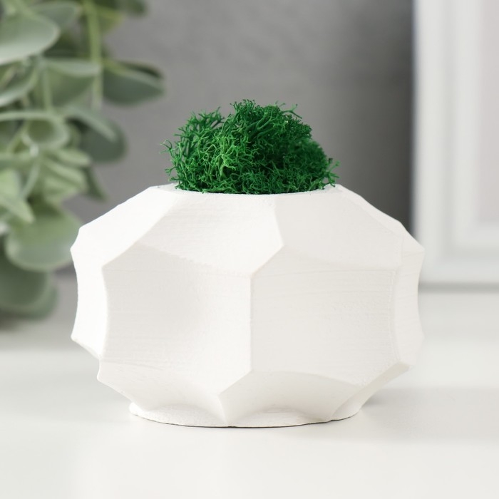 Кашпо бетонное "Грани" со мхом белый 7,5х7,5х5 см (мох зеленый стабилизированный)