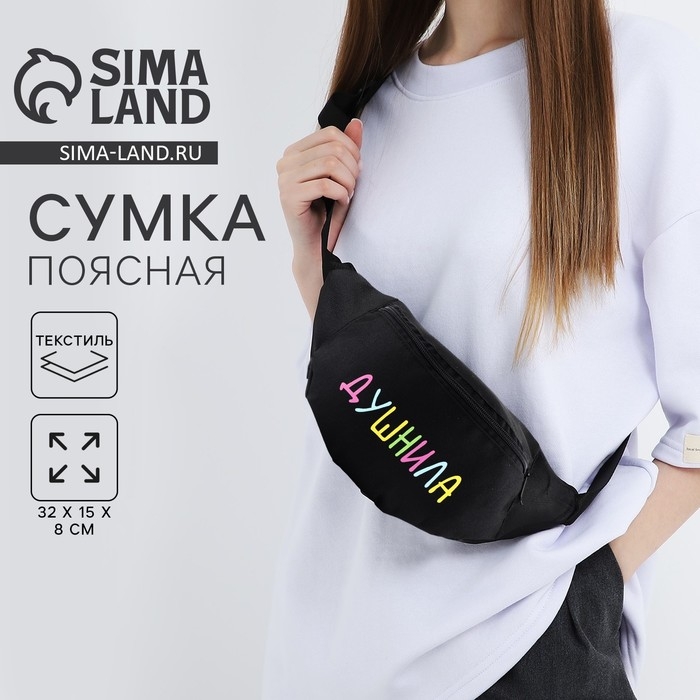 Сумка поясная «Душнила», 32х8х15 см, отдел на молнии, наружный карман, цвет чёрный