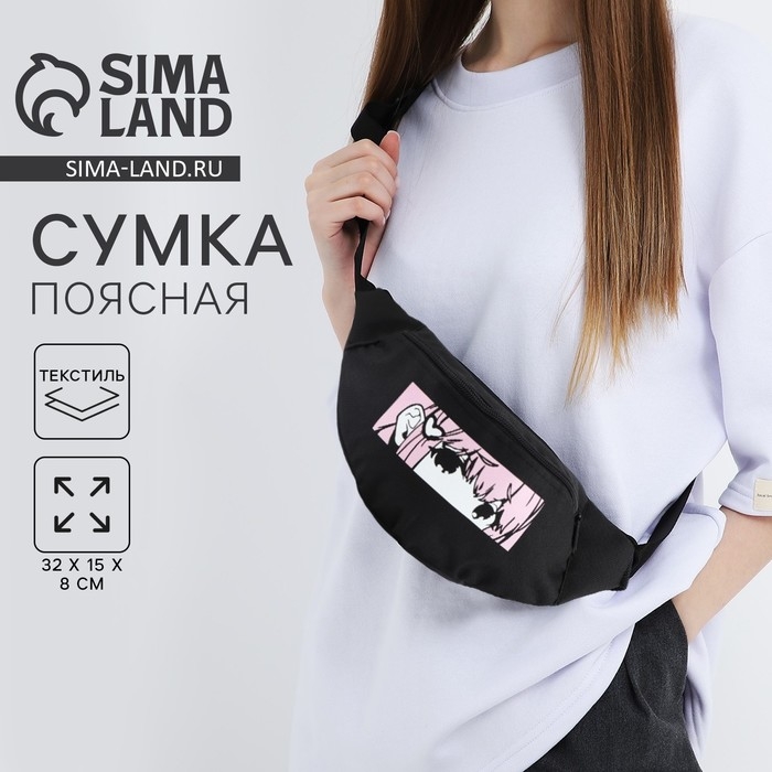 Сумка поясная «Аниме», 32х8х15 см, отдел на молнии, наружный карман, цвет черный