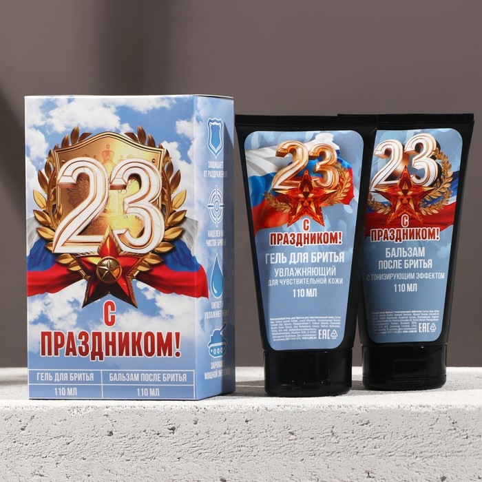 Подарочный набор косметики «С 23 Февраля!», гель для бритья 110 мл и бальзам после бритья 110 мл, HARD LINE