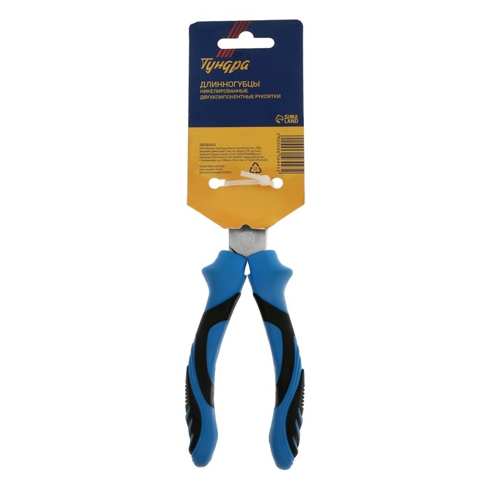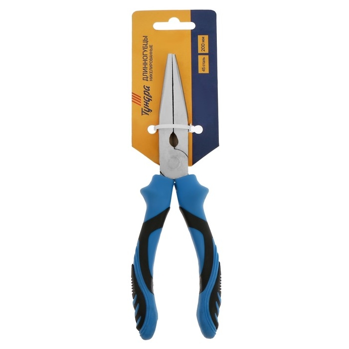 Длинногубцы ТУНДРА, сталь 45, никелированные, 2К рукоятки, 200 мм