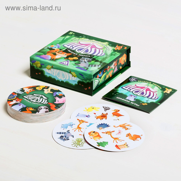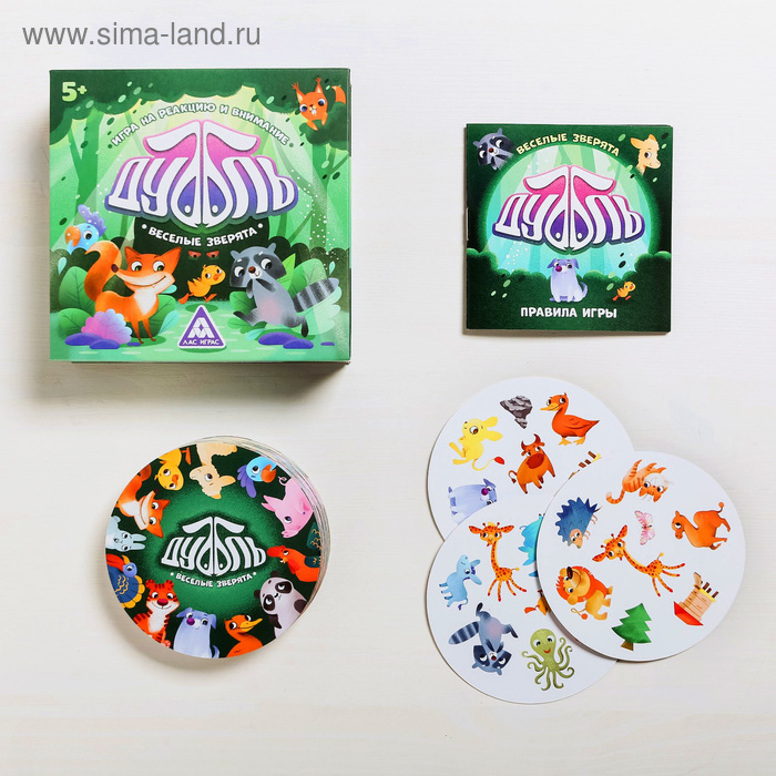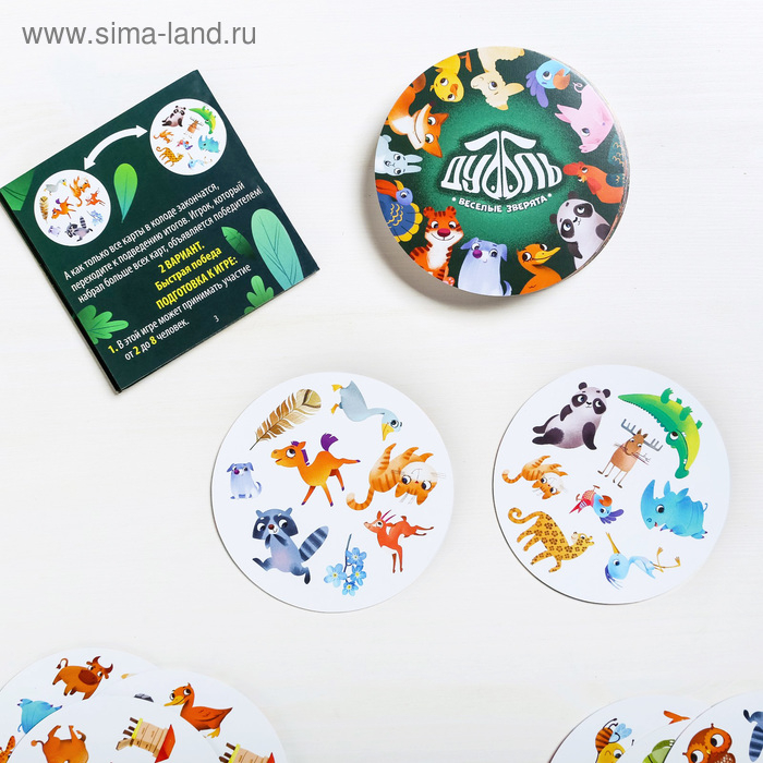 Настольная игра на реакцию и внимание «Дуббль. Веселые зверята», 55 карт, 5+