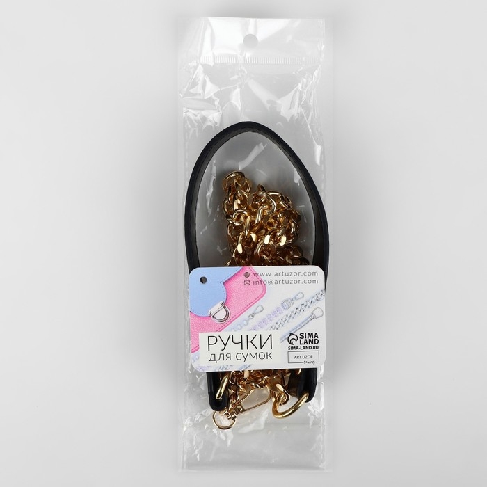 Ручка для сумки, с плоскими цепочками и карабинами, 120 × 3 см, цвет чёрный/золотой