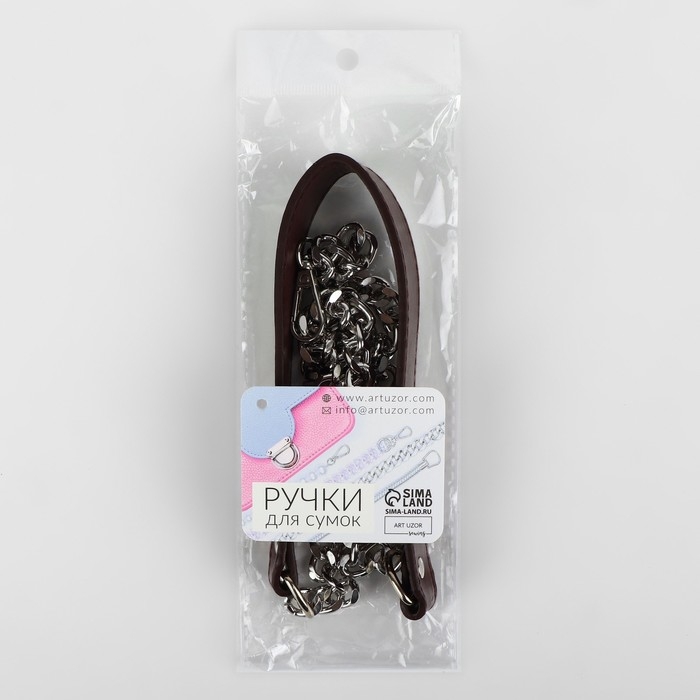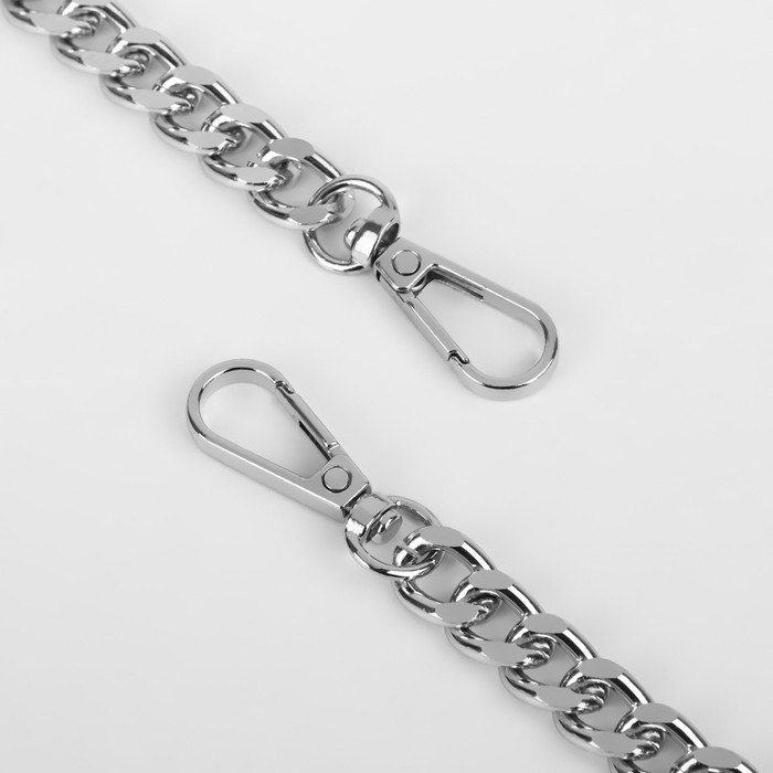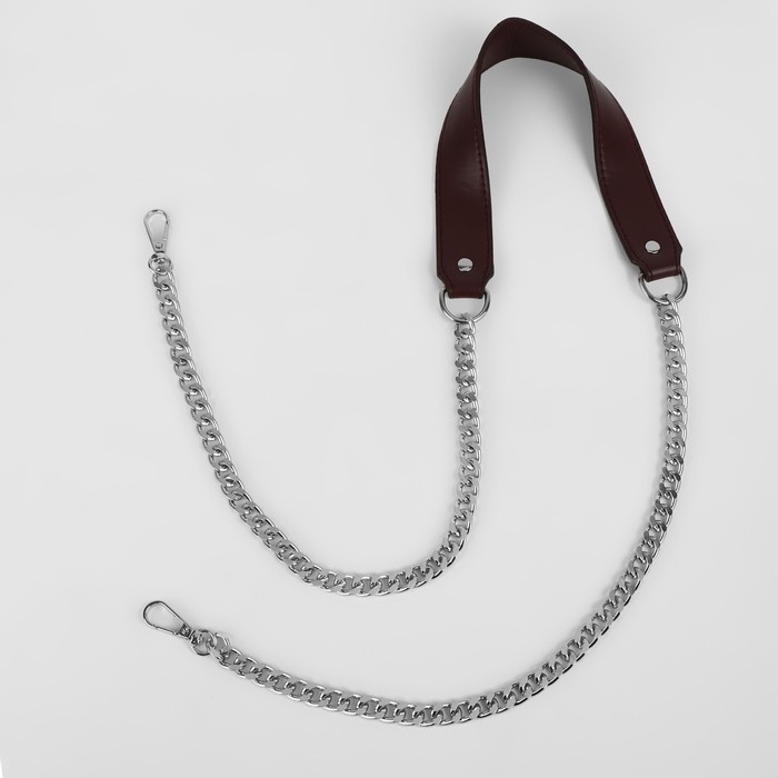 Ручка для сумки, с плоскими цепочками и карабинами, 120 × 3 см, цвет коричневый/серебряный