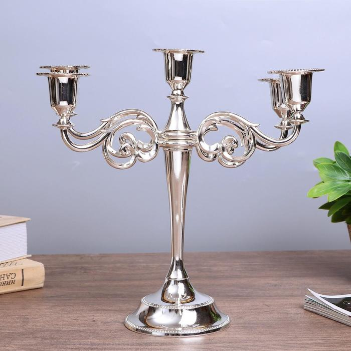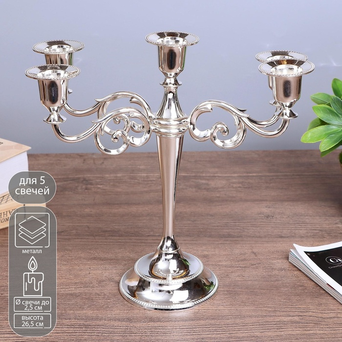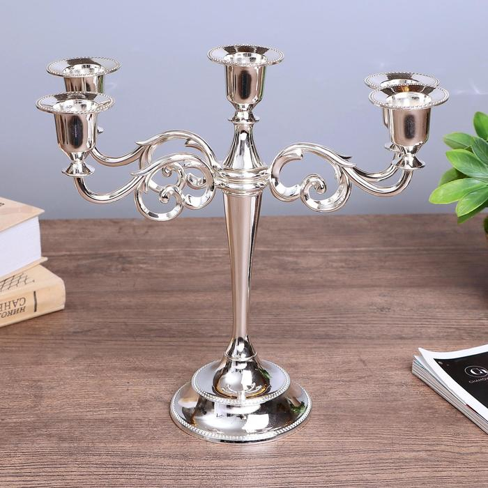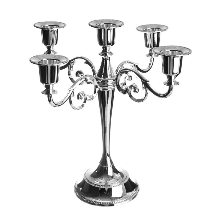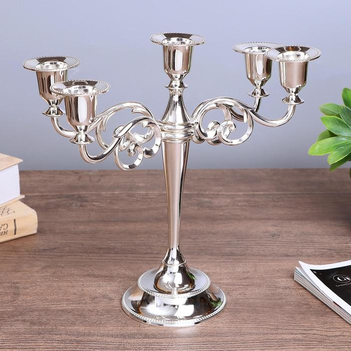 Подсвечник металл на 5 свечей "Лаконичность" цвет хром 26,5х27,5х10 см