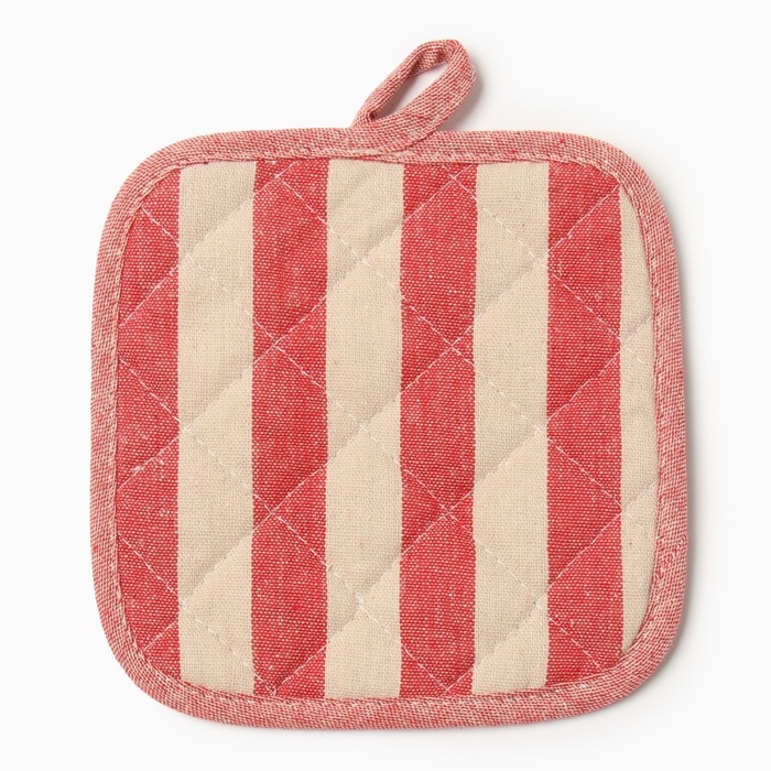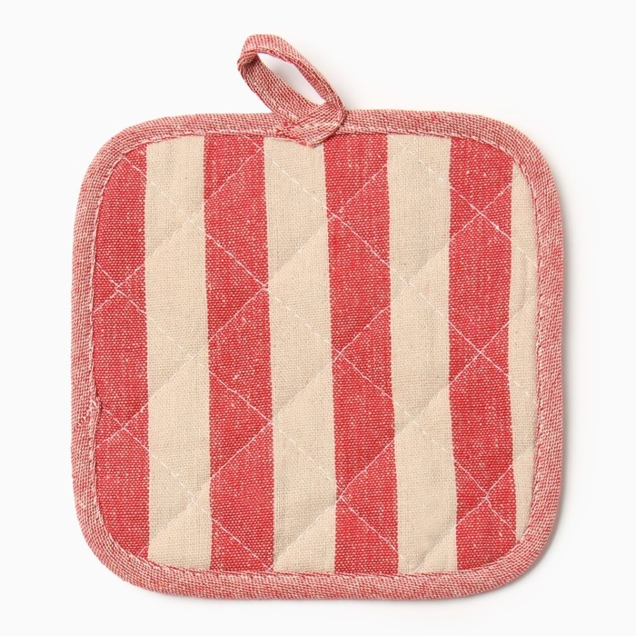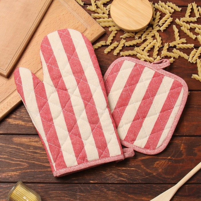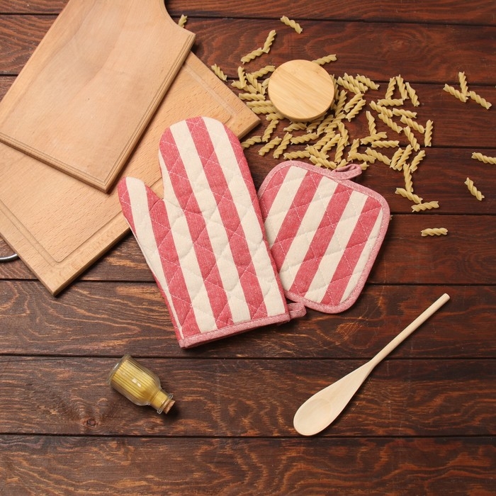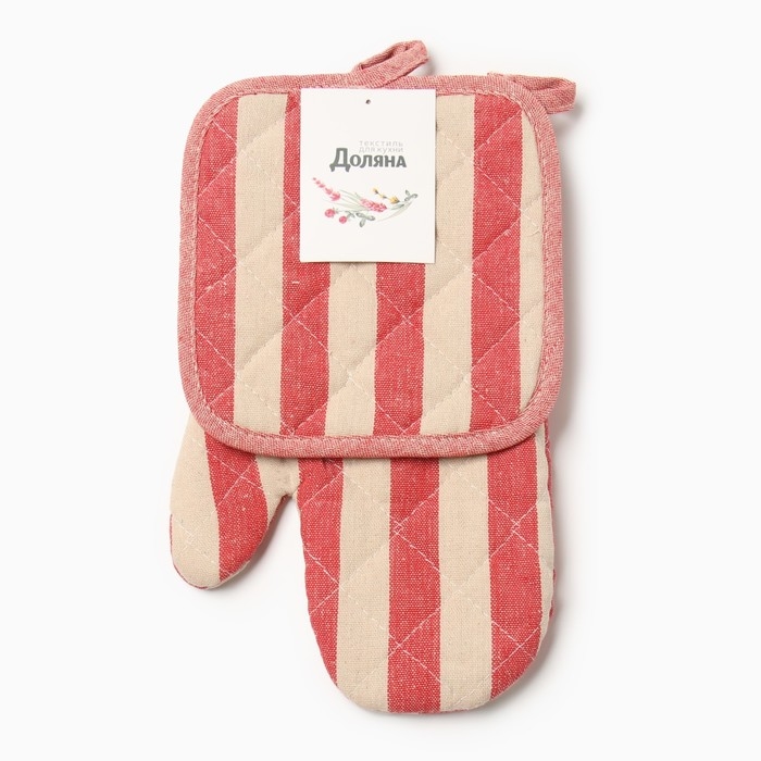 Новый год. Набор кухонный Доляна Полоса цв.красный,варежка-прих.28х17см, прихватка 17х17 50% п/э 50% хл 10