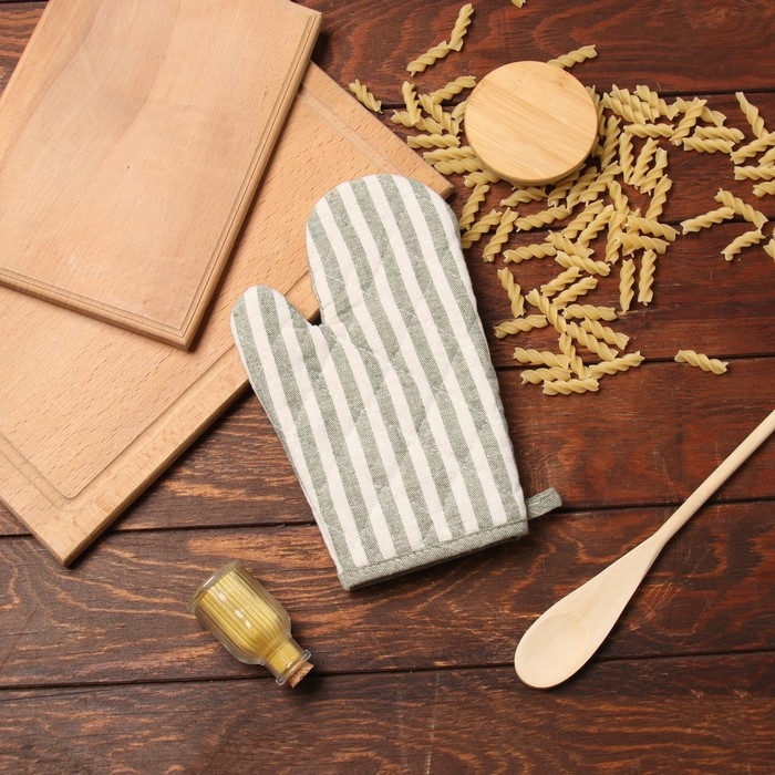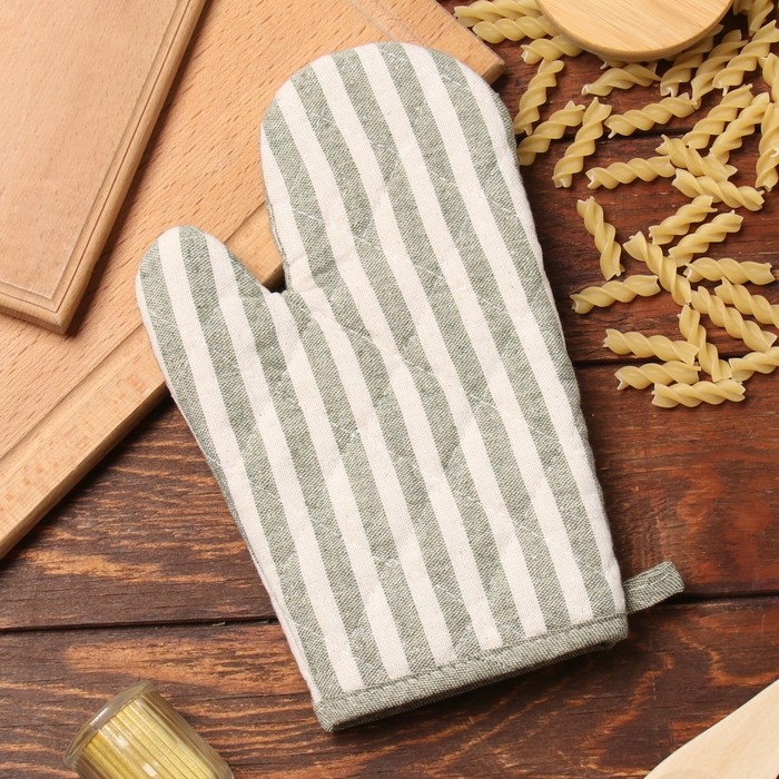 Варежка-прихватка Доляна Полоса цв.зеленый 25х17см,50% п/э 50% хл