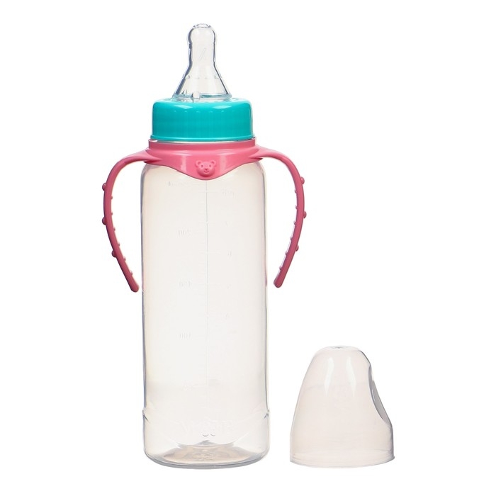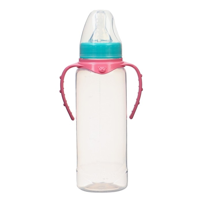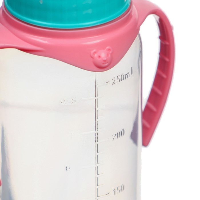 Бутылочка для кормления, классическое горло, 250 мл., от 0 мес., цилиндр, с ручками, цвет бирюзовый/розовый