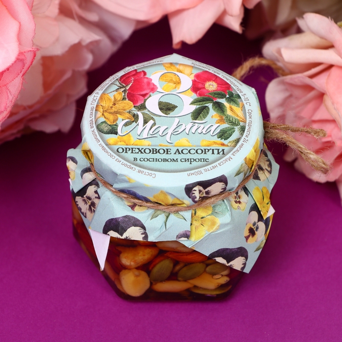 Если вы желаете кого-то удивить, то такое ореховое ассорти точно не оставит равнодушным! Ореховое ассорти в сосновом сиропе "Женский праздник" способствует скорейшему выздоровлению при простудных заболеваниях или мигренях. Вкусное, необычайно полезное и красивое ассорти из натуральных ингредиентов украсит ароматом любую кухню и соберет всю семью на полезное чаепитие в любое время года.