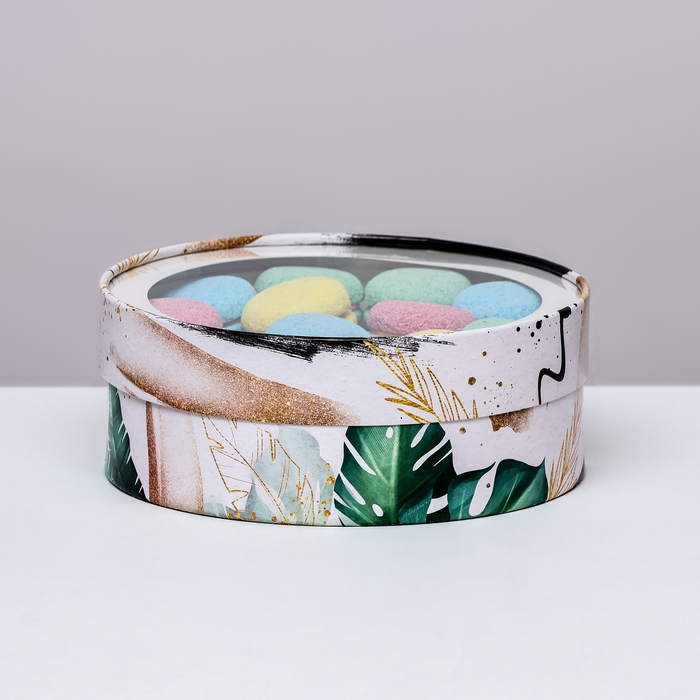 Коробка для макарун тубус с окном " Элегантность " 21 х 21 х 7 см