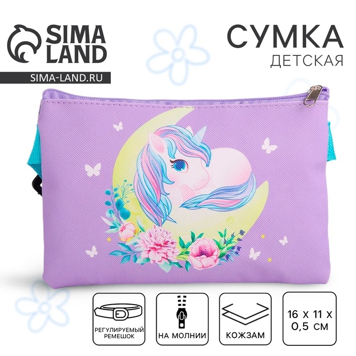 Сумка детская для девочки "Лунный единорог", эко-кожа, фиолетовый, 16х11 см