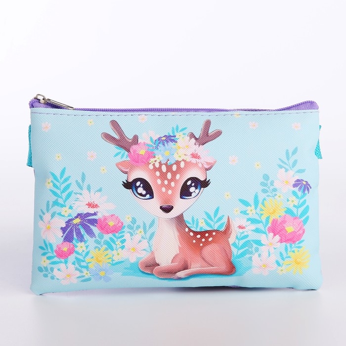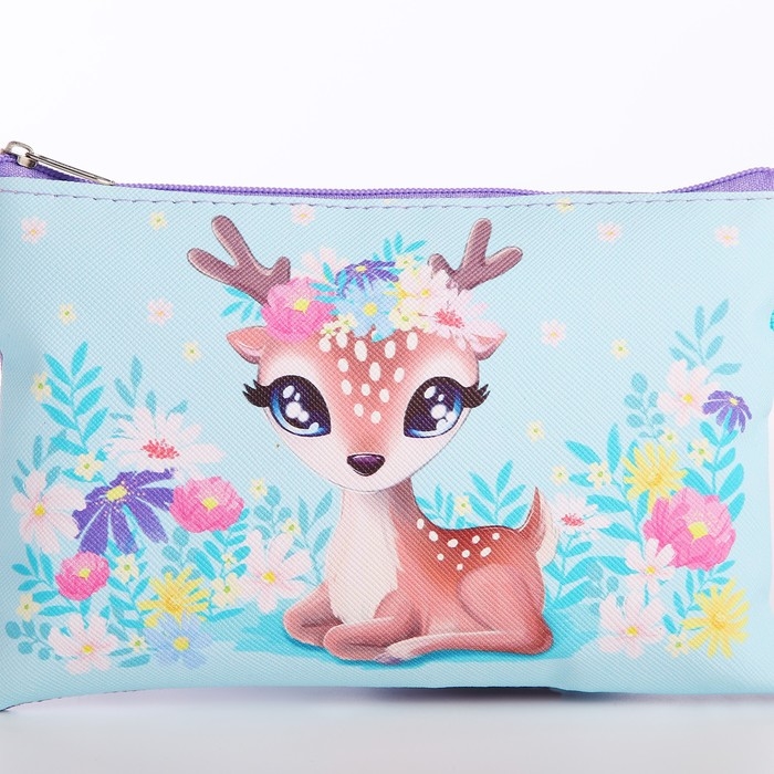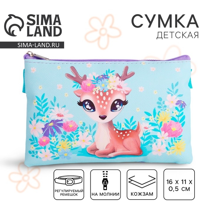 Сумка детская для девочки "Добрый олененок", эко-кожа, голубой, 16х11 см