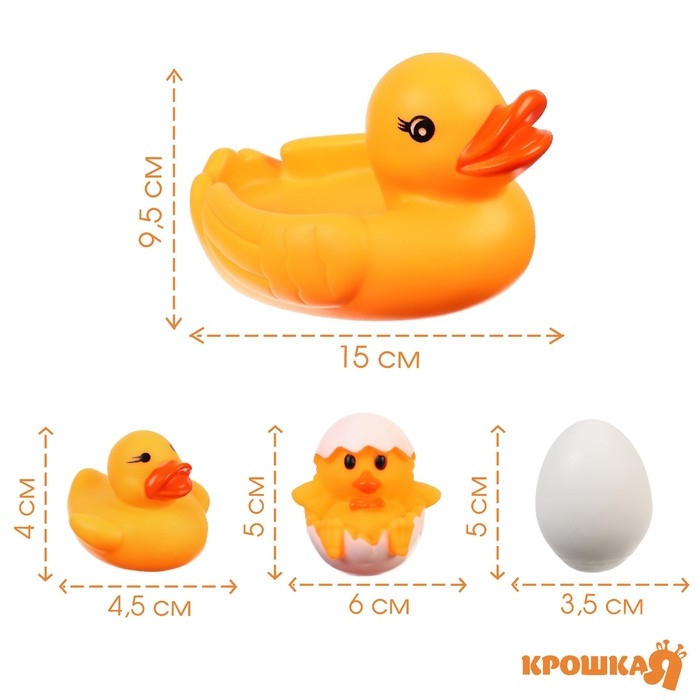Набор резиновых игрушек для ванны «Мыльница: Уточка с детишками», 15 см, с пищалкой, 4 шт, Крошка Я
