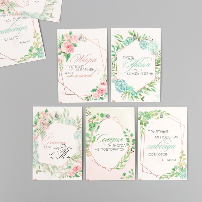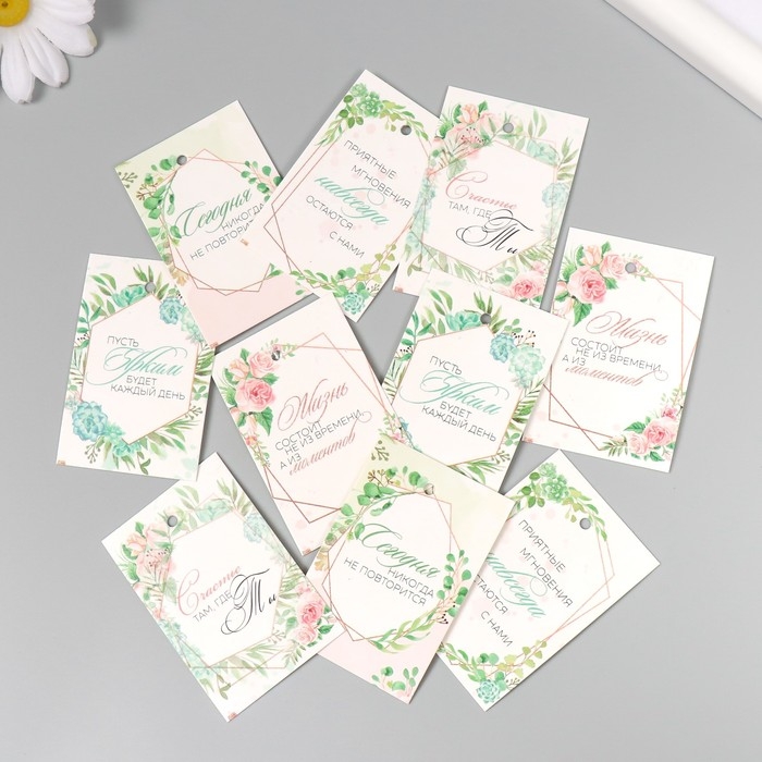 Бирка картон "Пожелания. Мотив" набор 10 шт (5 видов) 4х6 см