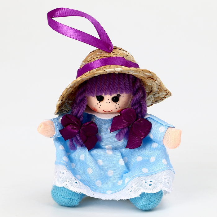 Мягкая игрушка «Кукла» в голубом платье, на подвесе, 10 см