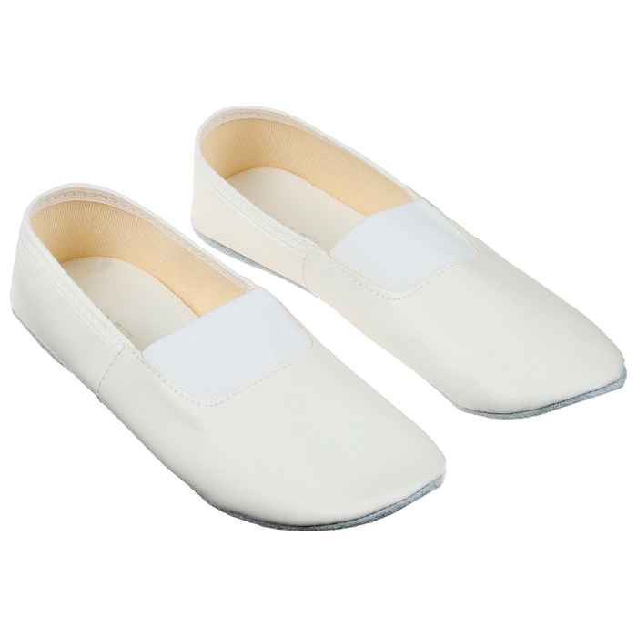 Чешки подходят для занятий танцами, гимнастикой и спортом. Подошва из натуральной кожи не скользит на гладком паркете и обеспечивает хорошее сцепление с площадкой. Широкая мягкая резинка крепко удерживает стопу, с ней чешки плотно сидят на ноге. Нейтральный цвет подойдёт любому костюму.