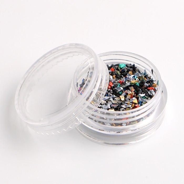 Набор для декора ногтей, в пластиковом органайзере, 6 баночек, цвет серебристый