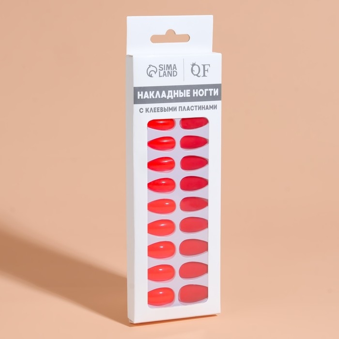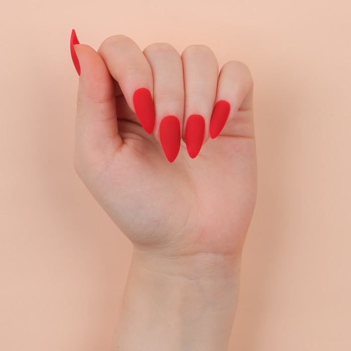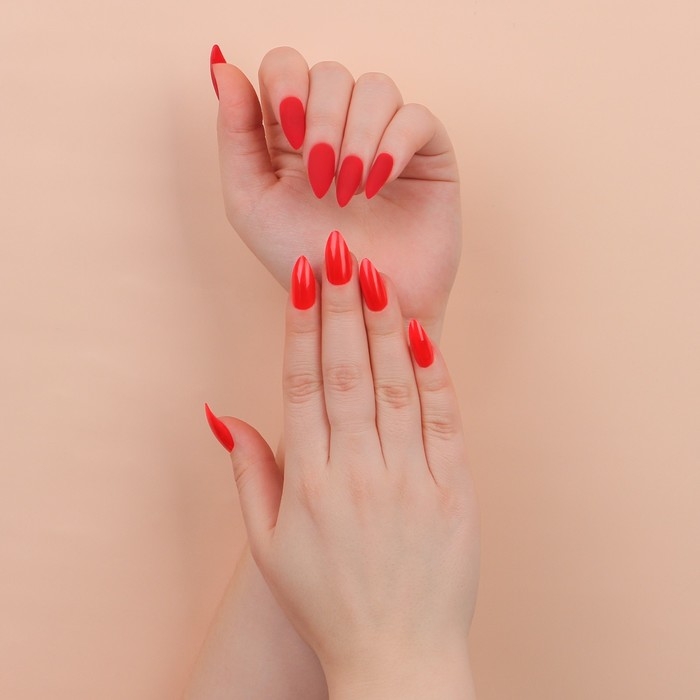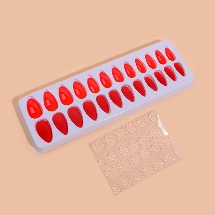 Накладные ногти, 24 шт, с клеевыми пластинами, форма миндаль, матовый/глянцевый, цвет алый