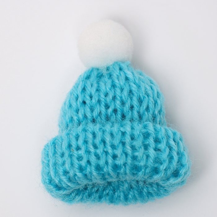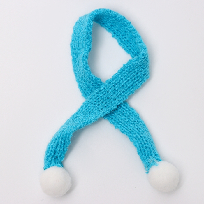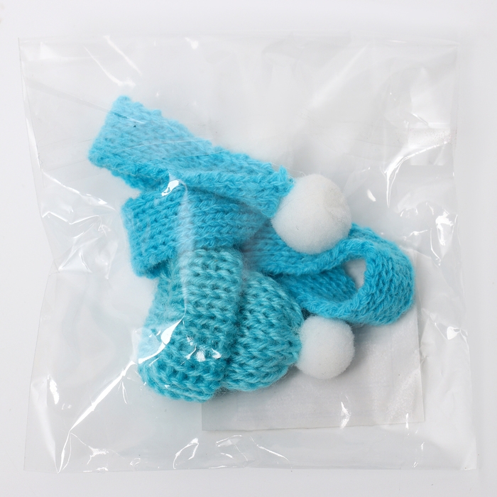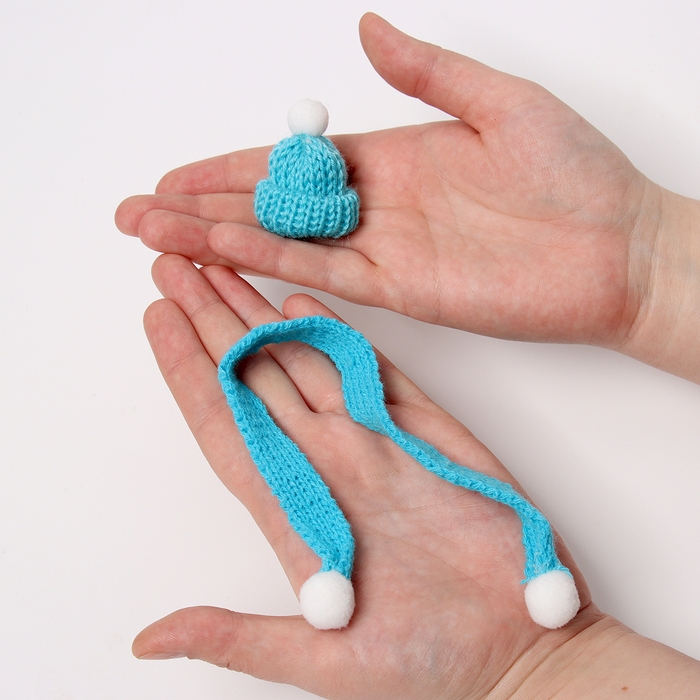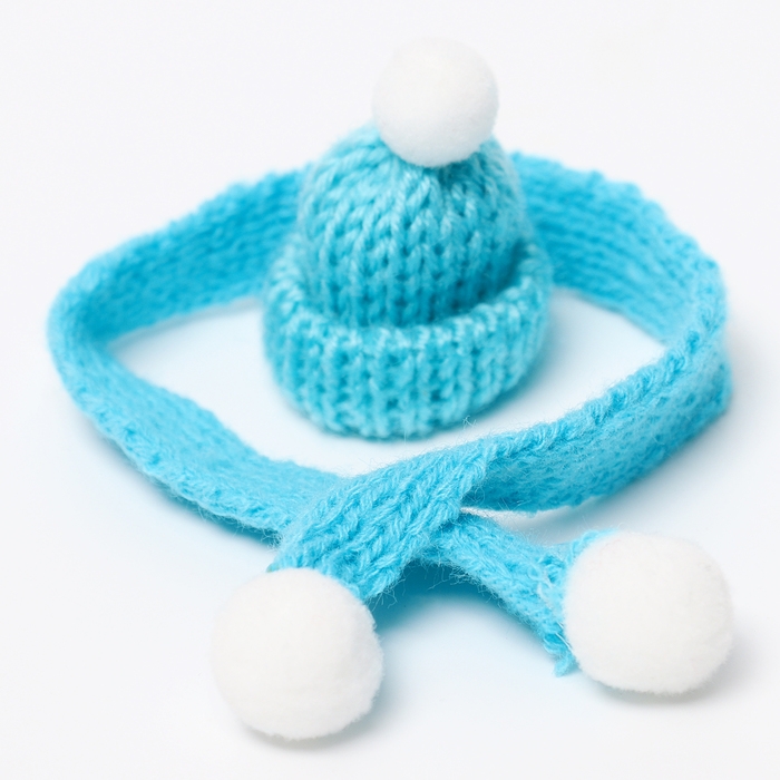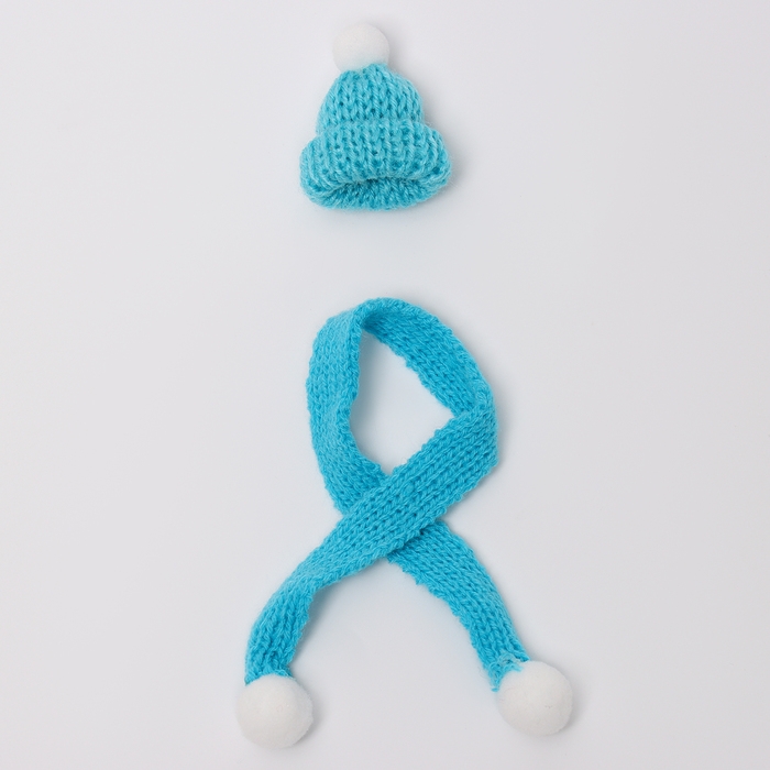 Вязаные шапка и шарфик для игрушек, цвет голубой