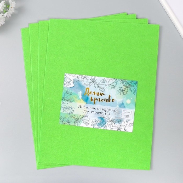 Фетр 2 мм "Неоново-зелёный" набор 4 листа 30х40 см